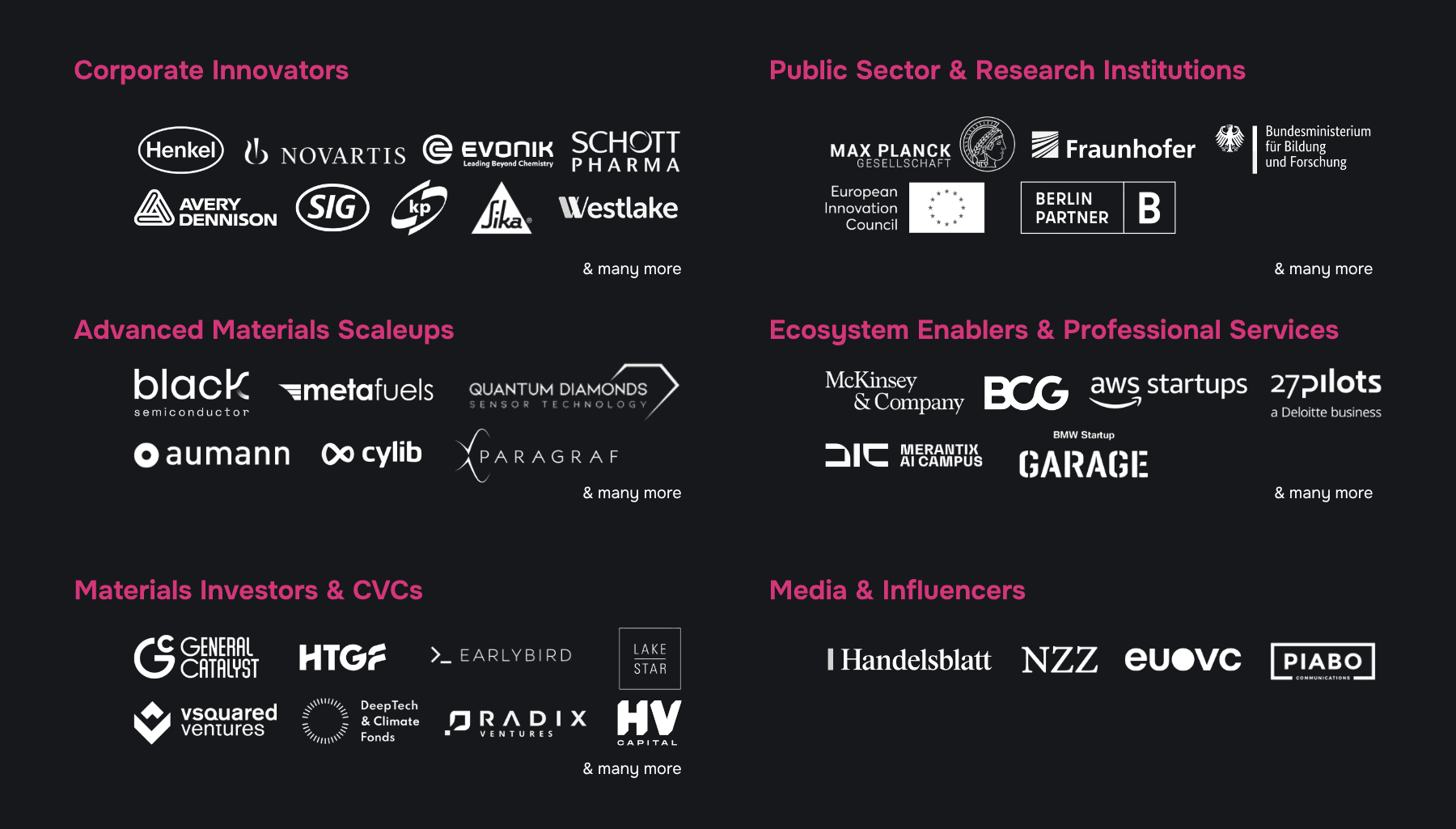 Corporate leaders Procurement, R&D, M&A and Sustainability Leaders, CVCs and Venture Clienting Units in chemical, pharma, energy, and manufacturing.